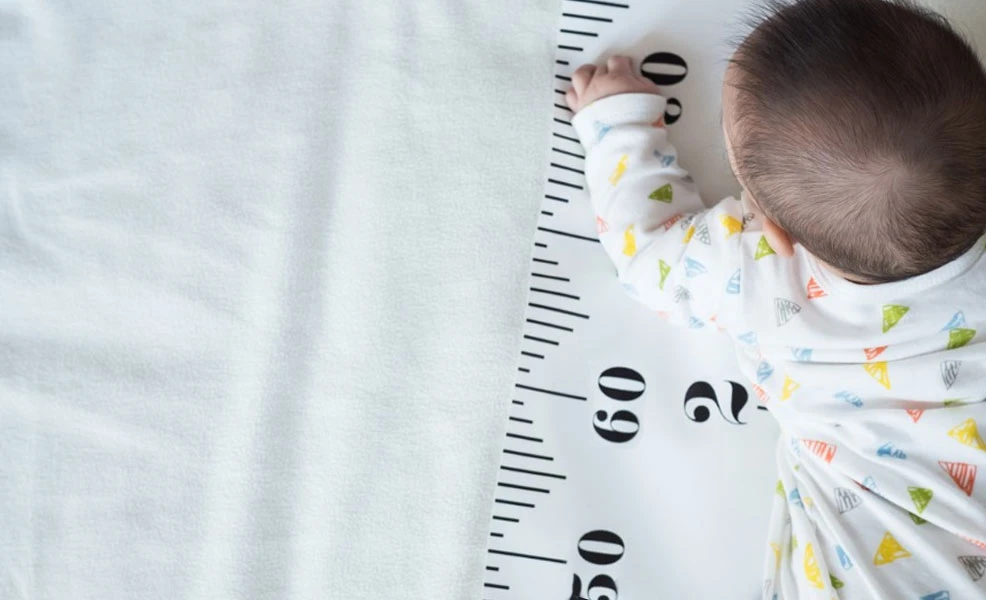 Want to see how your baby's growth compares to others? Use our free baby growth chart calculator! Be sure to enter a corrected age (actual age in months minus how many months premature your child was born; for example, if your baby is 6 months (26 weeks) old and was born 1 month (4 weeks) early, then enter 5 months into the calculator when it asks for age.